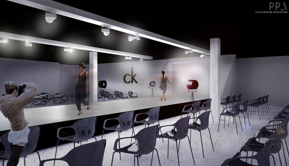 Projekt wnętrza wybiegu modowego wraz z zapleczem w budynku domu handlowego jednej marki